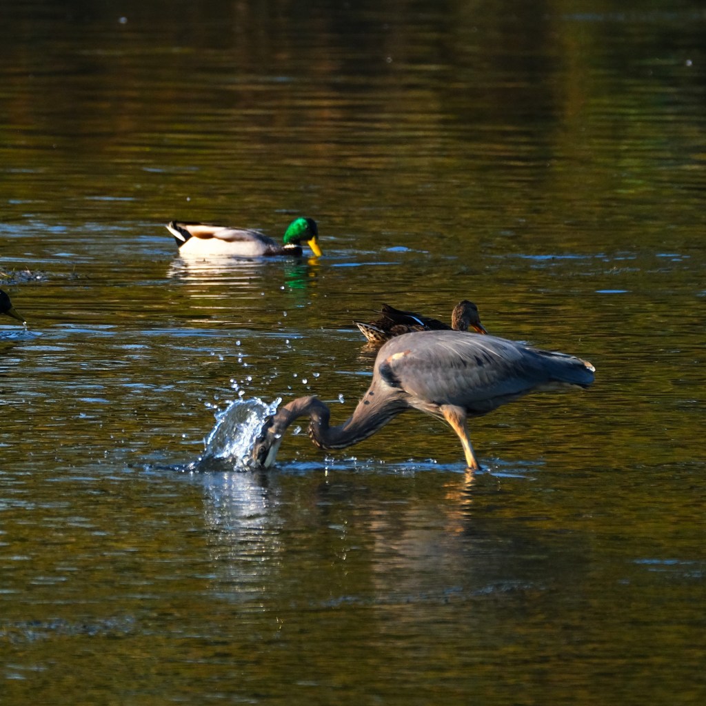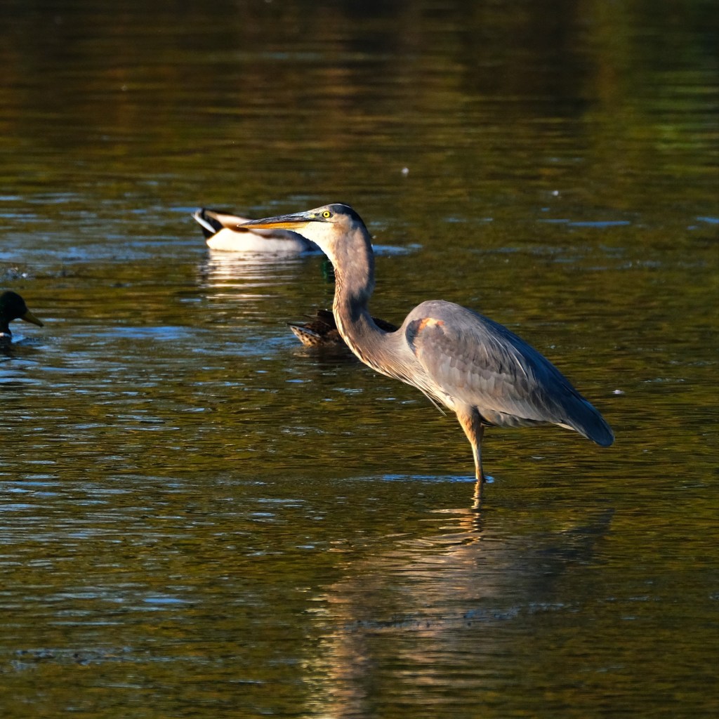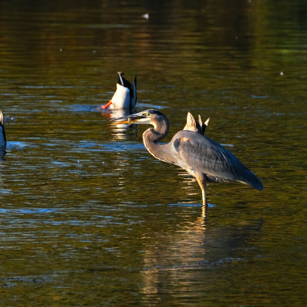 Meanwhile, out on the water, a youngish-looking great blue heron had bigger fish to fry.