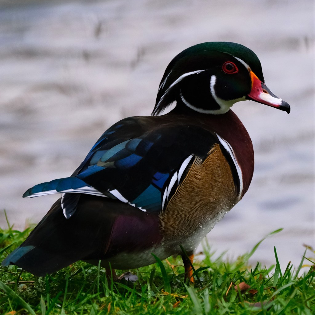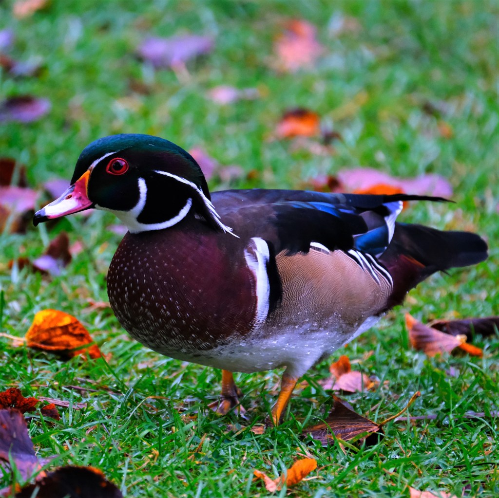 The wood ducks at the pond were nice and friendly this morning, and here are a couple of males looking especially resplendent.