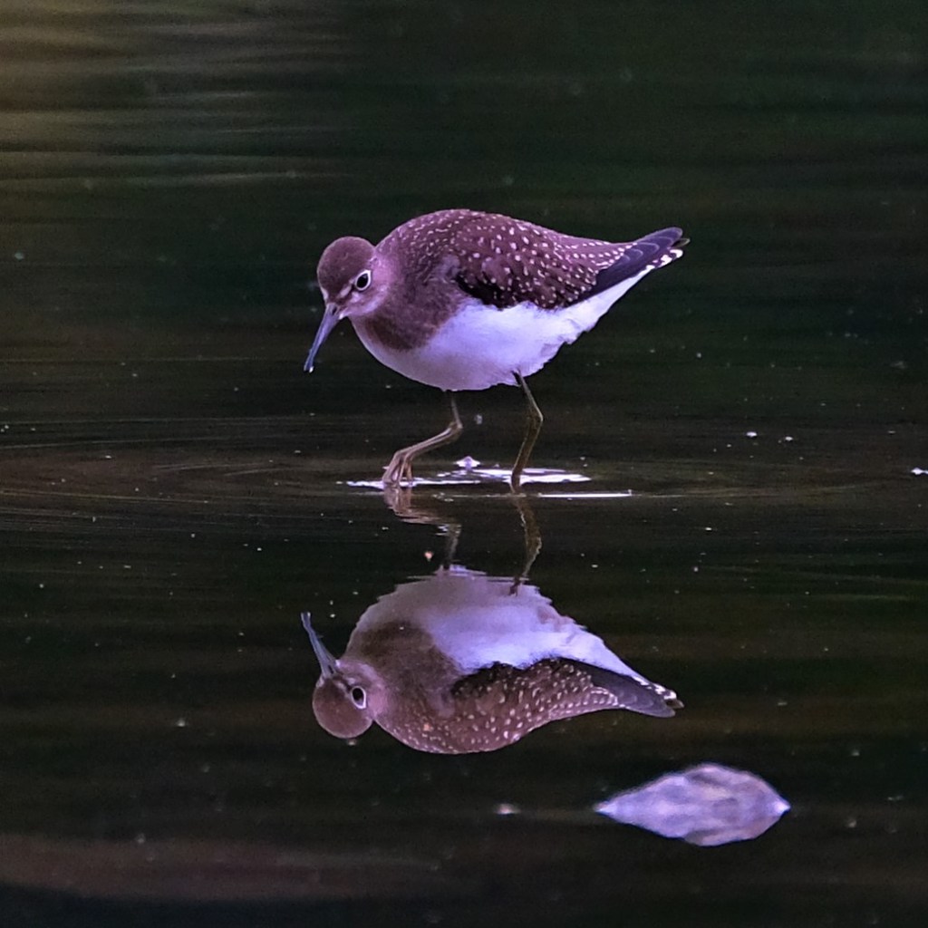 At the river, I was happy to see a sandpiper, of whom we haven’t seen much in a while, land just offshore to forage. The little white flecks on its back lead me to believe that it is a young solitary sandpiper on its way from Canada to the Gulf of Mexico and beyond maybe even for the first time. Safe travels, little buddy!