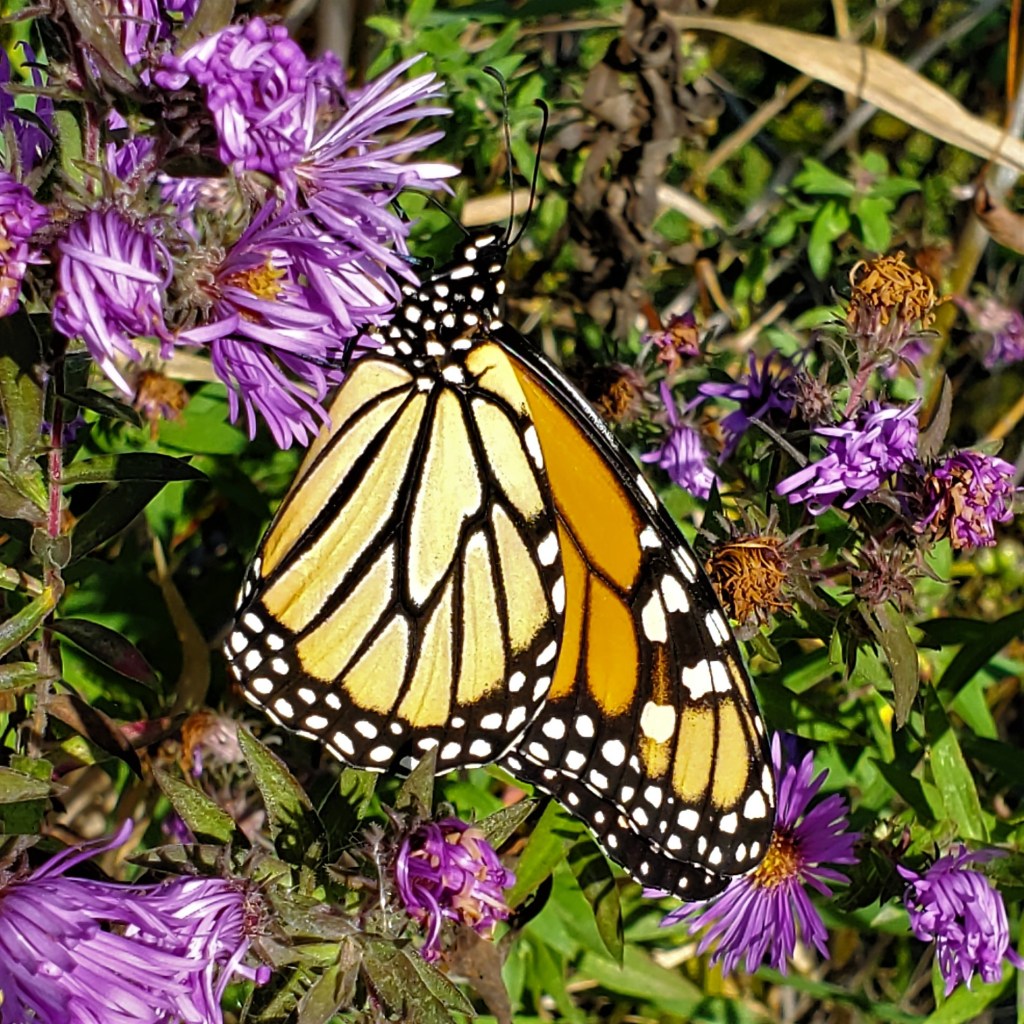 Lastly, I rode my bike down the Oak Leaf Trail yesterday afternoon to stop by campus, and look who I spotted on the New England aster by the Urban Ecology Center. Yup, one last monarch who hasn’t made its way to Mexico yet.