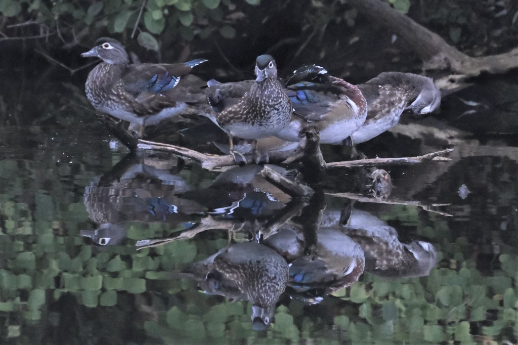 When I finally reached the north end of the pond, the four wood ducks were still on their branch, but with a prettier background.