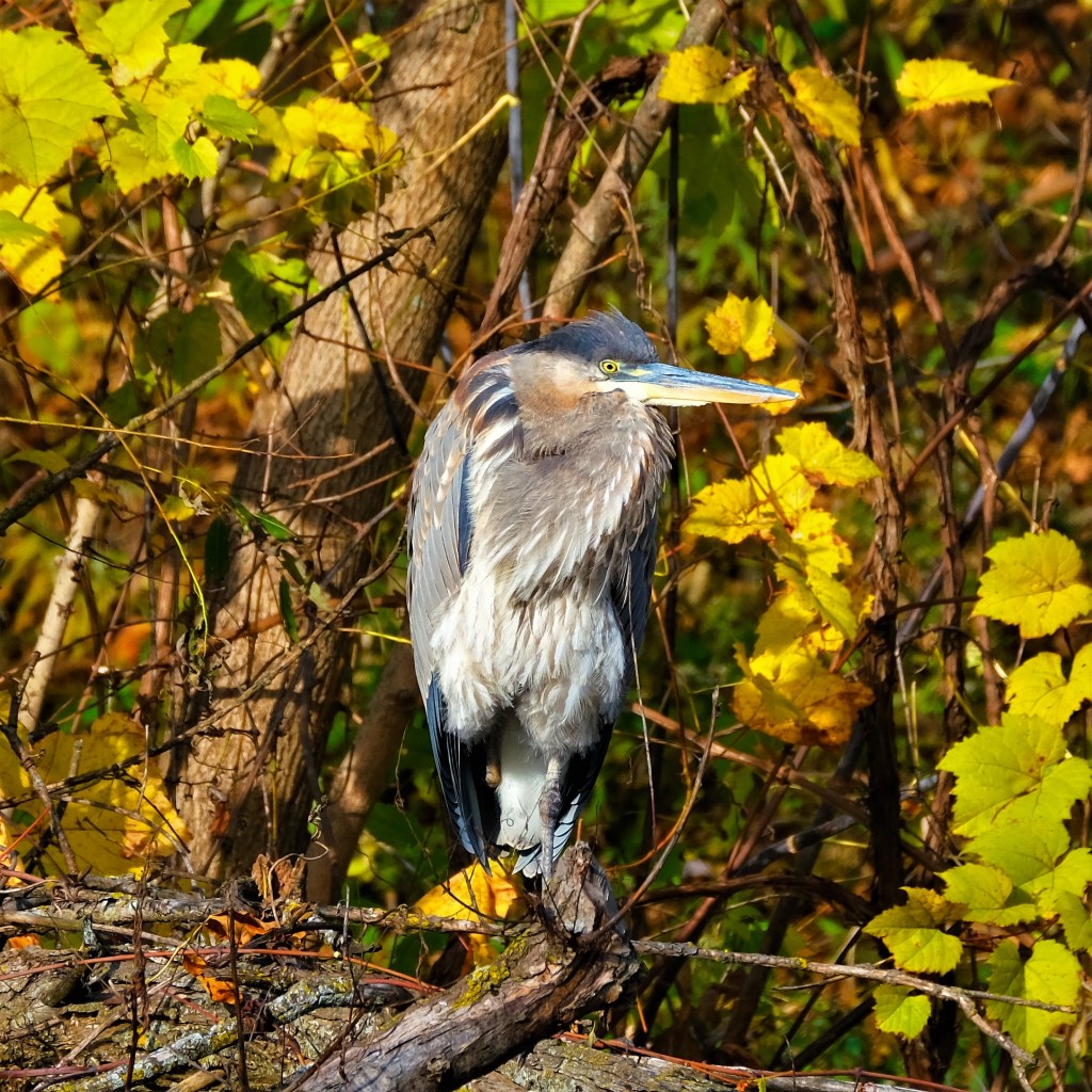 The river valley provided a nice respite from the brisk breeze out of the west, so I continued south along the eastern bank, and this blue heron, who may have been thinking the same thing, provided one more pleasant surprise.