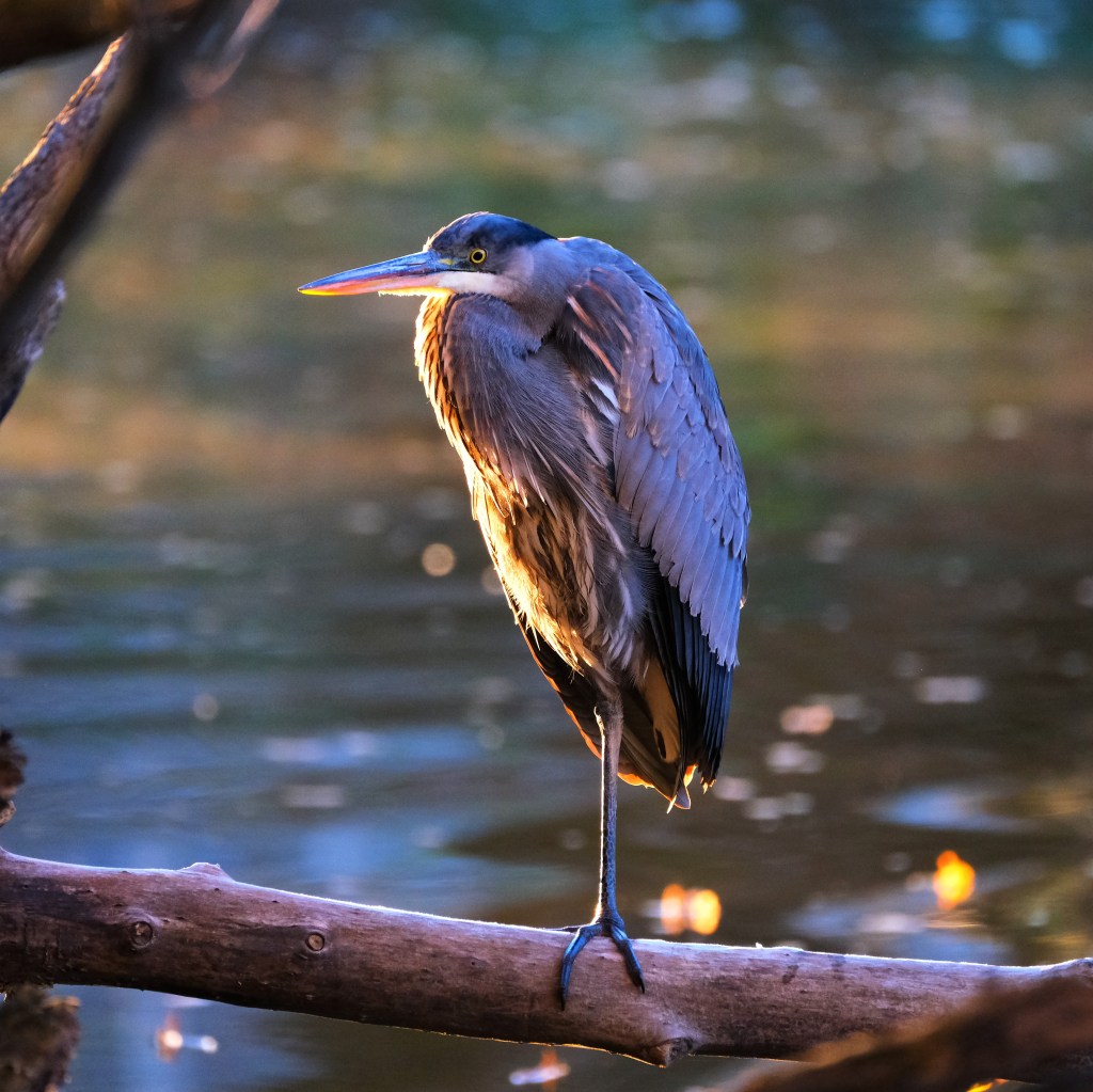 Here’s a blue heron on the east side of the river warming its bones in the bright morning sun.