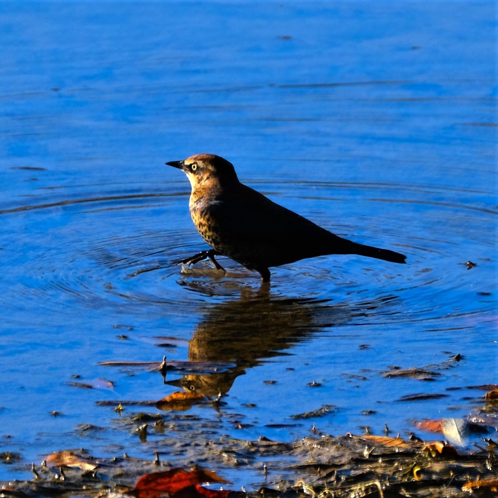On the river, a bunch of rusty blackbirds were back, and here’s one striding through the shallow water like it’s a deer. We’re right at the northern edge of their winter range, so it’s possible the ones we saw back in October have stuck around, and I just haven’t seen them for a while, or this is a new batch that just arrived from the north side of Lake Superior. They wouldn’t tell me which, however.