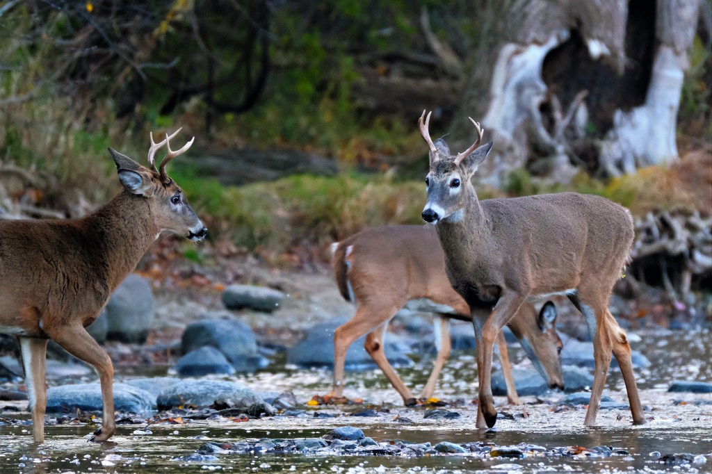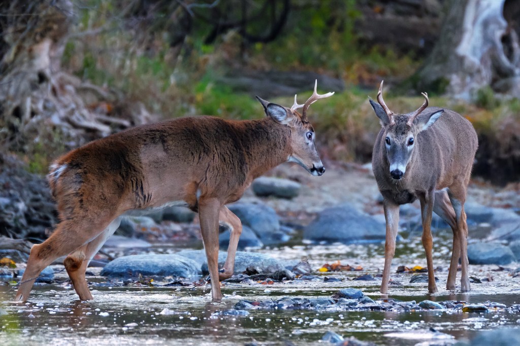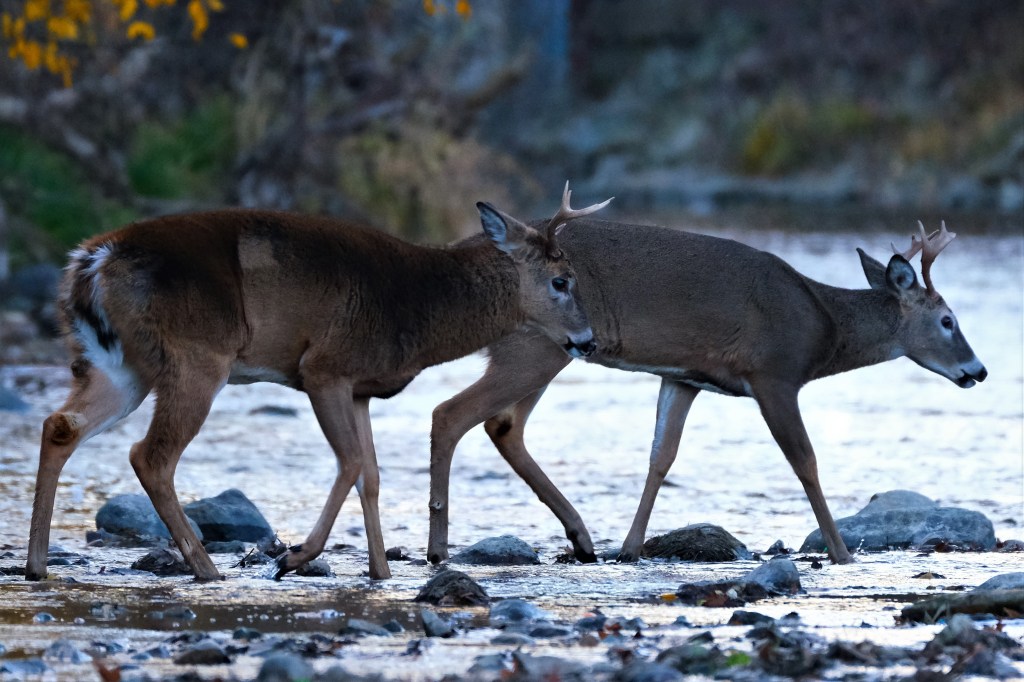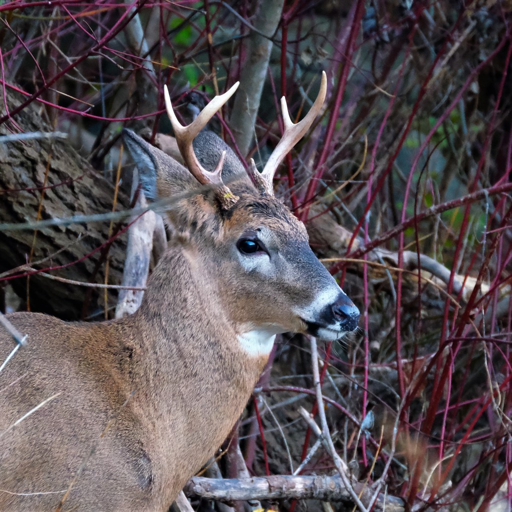 It all started with just one doe, whom I accidentally spooked as I made my way north along the river trail from the southern end. At first, she bolted inland, but when I didn’t pursue, she came back, crossed the trail, and continued down to the river.