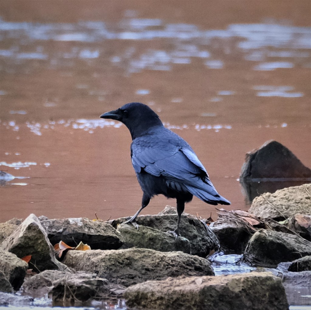 A crow was foraging again on the now-exposed river bottom between the islands. Maybe it was craving some more of that naturally-aged salmon.