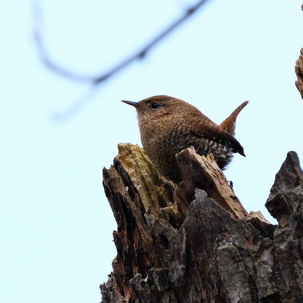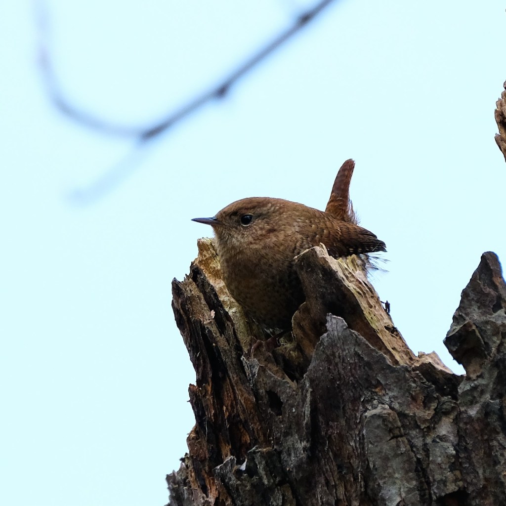 By the looks of that round shape, short tail held straight up, and the slight stripe over the eye, I’d say we’ve finally got ourselves a winter wren (Troglodytes hiemalis). It’s about darn time, eh? Oddly enough, it appears that their breeding range is just a bit north of here, their winter range is just a bit south of here, and we’re smack dab in the middle of their short migration range. Well, we’ll take what we can get, right?