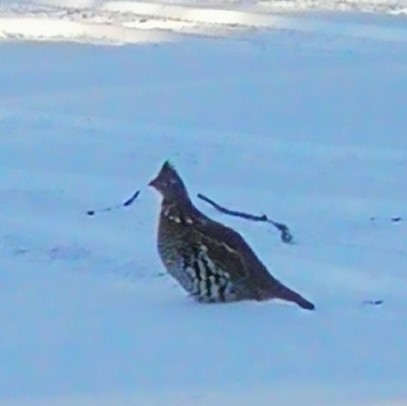 Meanwhile, my sister-in-law, Mary, sent me this image of a ruffed grouse (Bonasa umbellus) she spotted in Two Rivers, Wisconsin. I have no further information at this time.