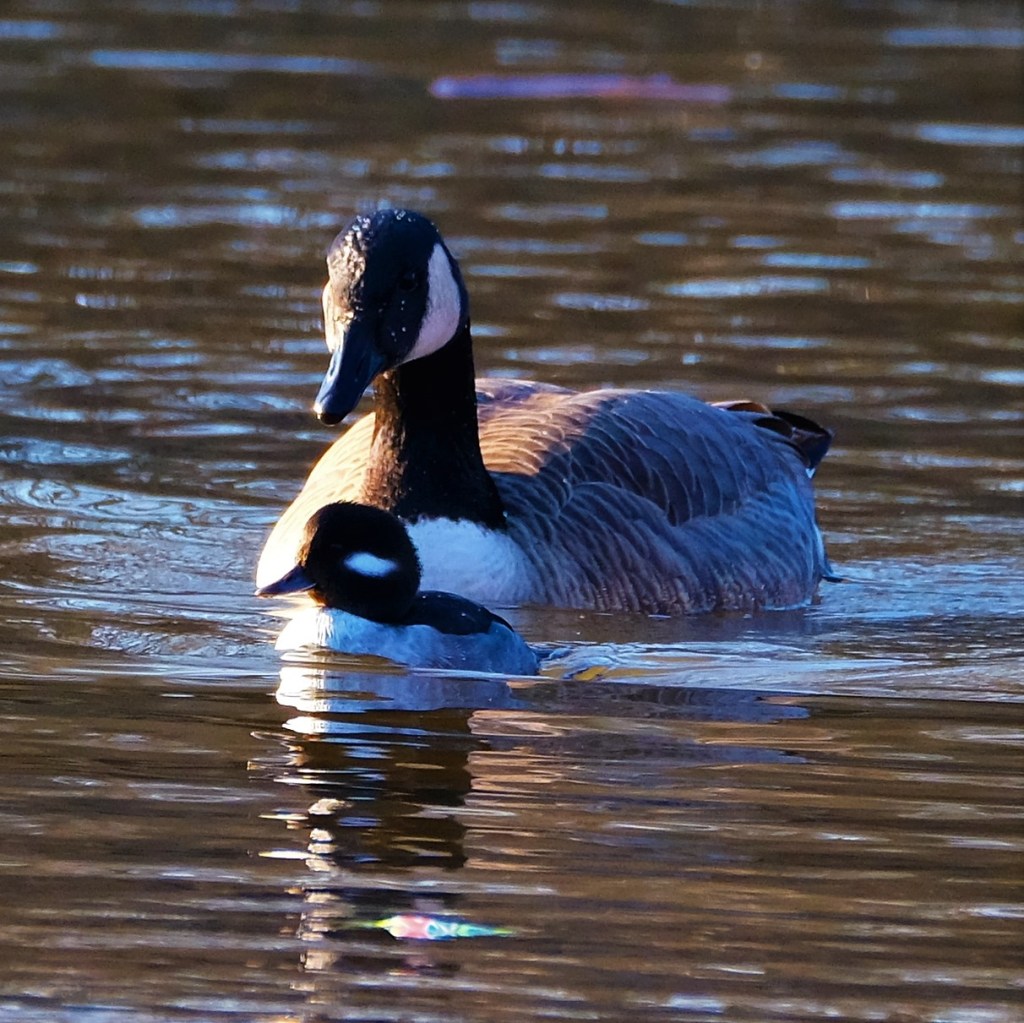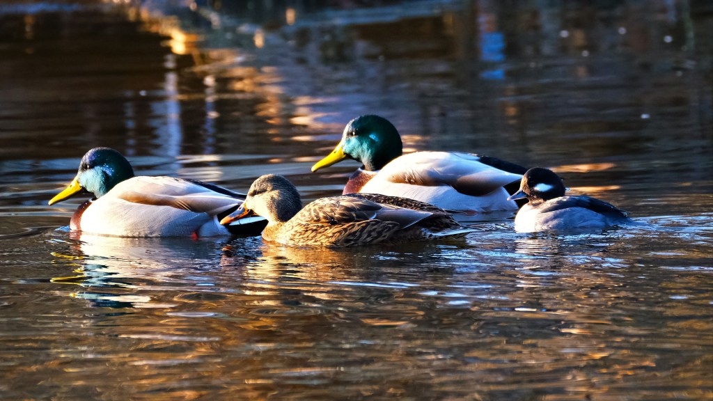 As you already know, I did get better opportunities to photograph the bufflehead, and here it is again with the mallards….
