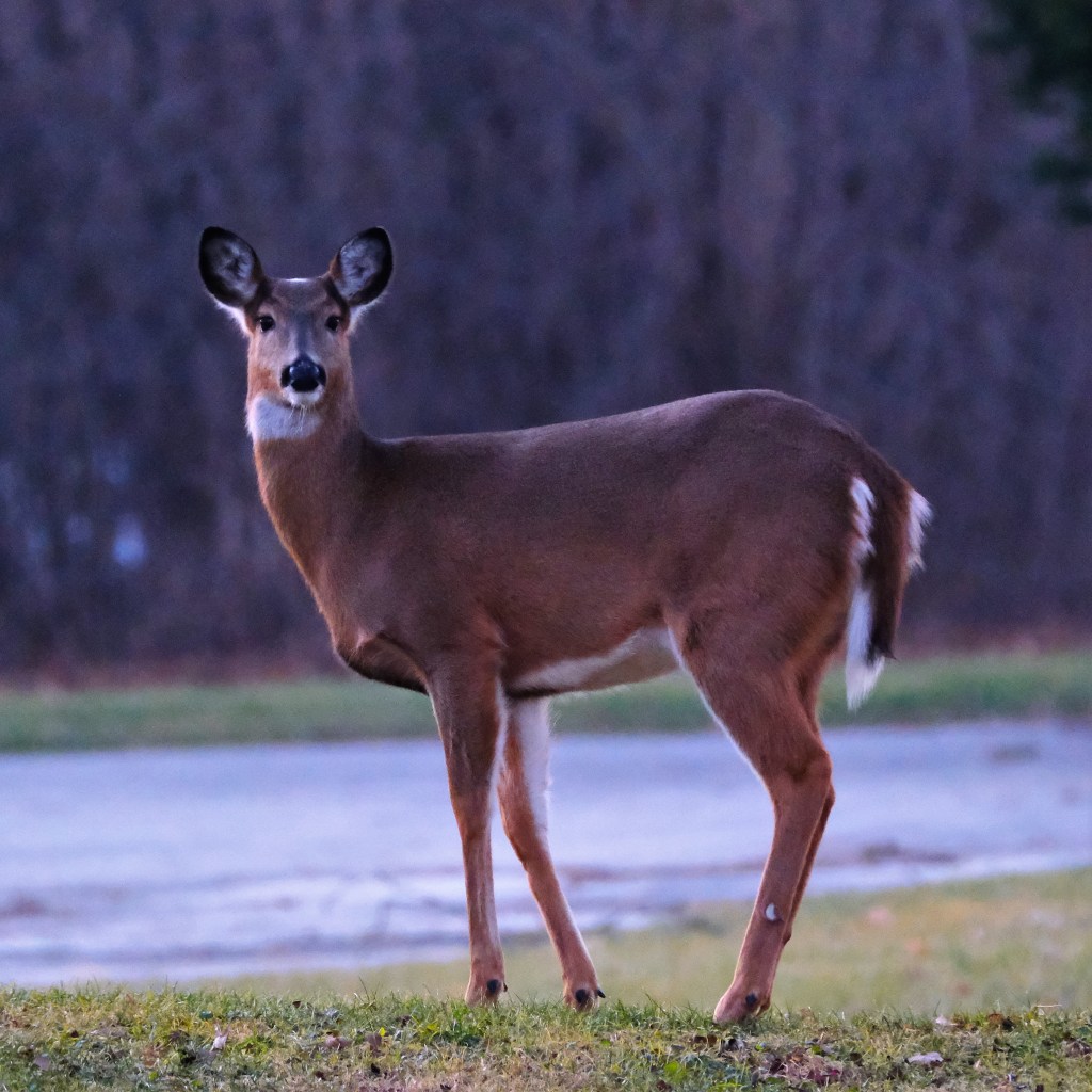 The cloud cover was back, and warmer air came with it. I saw the trio of deer again, but it was still too dark for my camera to work this morning. Instead, here’s another picture from yesterday morning when there was a little bit more light.