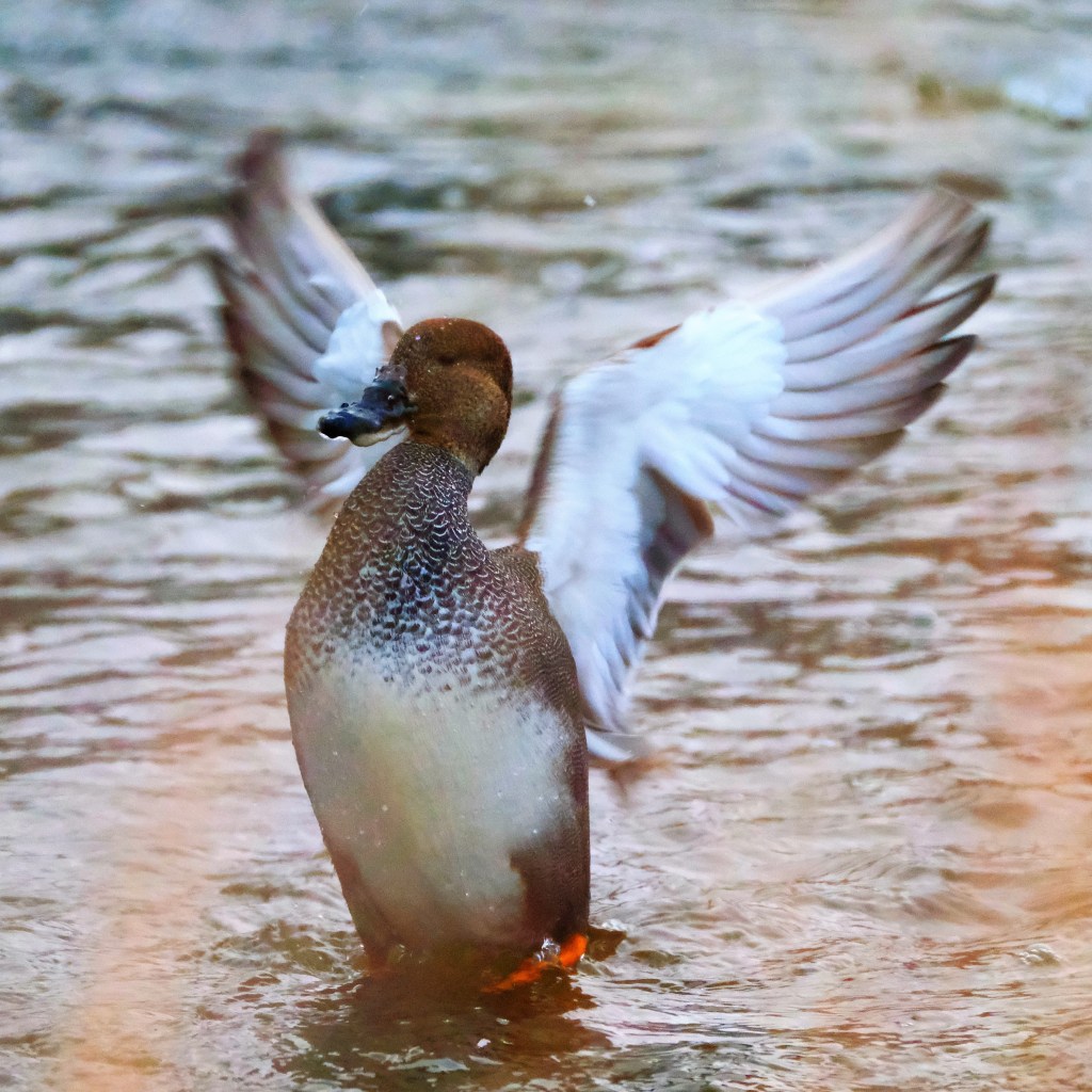 Our new gadwall drake was still on the lower river, and he appeared to be having icing issues that the mallards were not facing, but he seemed unfazed by the situation, thankfully.