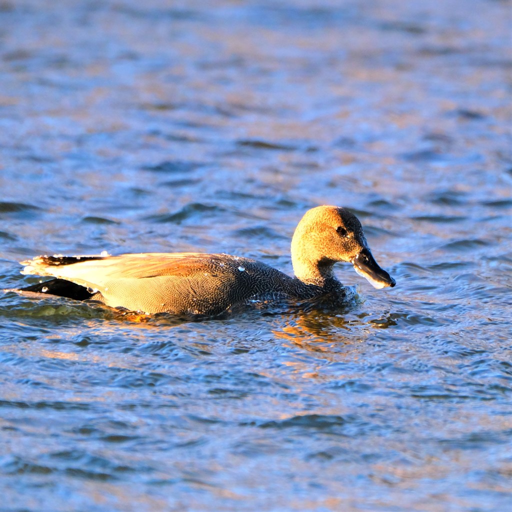 By then the wind was already picking up, and I hardly saw another bird all the way to the north end and back. When I returned to the top of the mild rapids, where the open water resumes, a large group of mallards had accumulated, and I found our gadwall drake among them again. His front defroster still looks problematic, but it clearly works well enough for him to stick around and continue to look healthy.