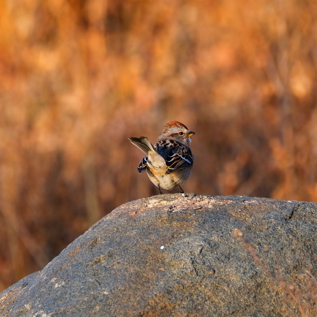 Here’s an America tree sparrow, not in a tree once again, despite its name.