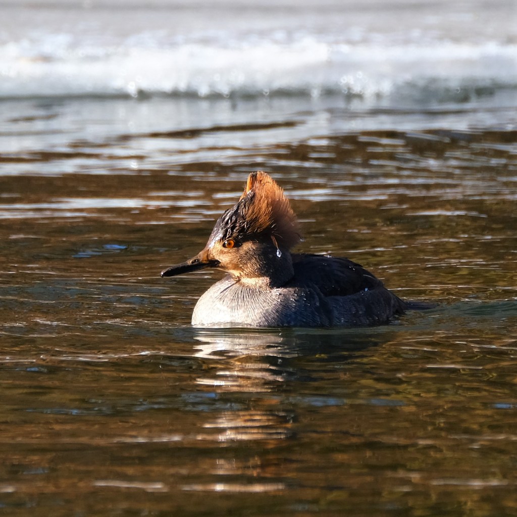 Back at the south end, our hooded merganser hen was fishing, as usual.
