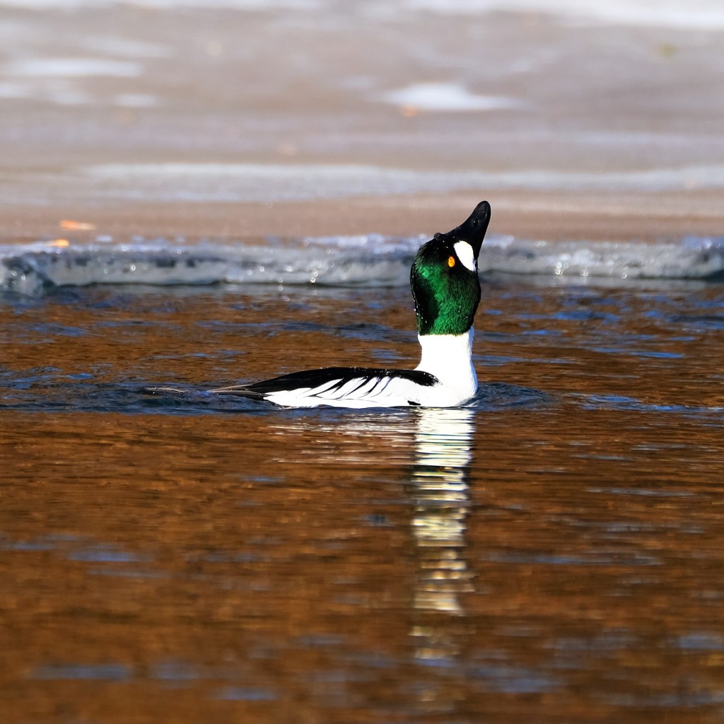 And one of the goldeneye drakes was keeping his neck nice and limber just in case the opportunity to show off presents itself.