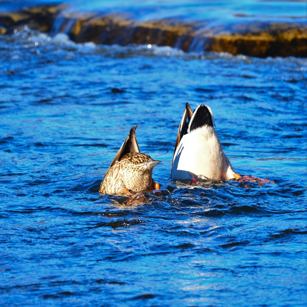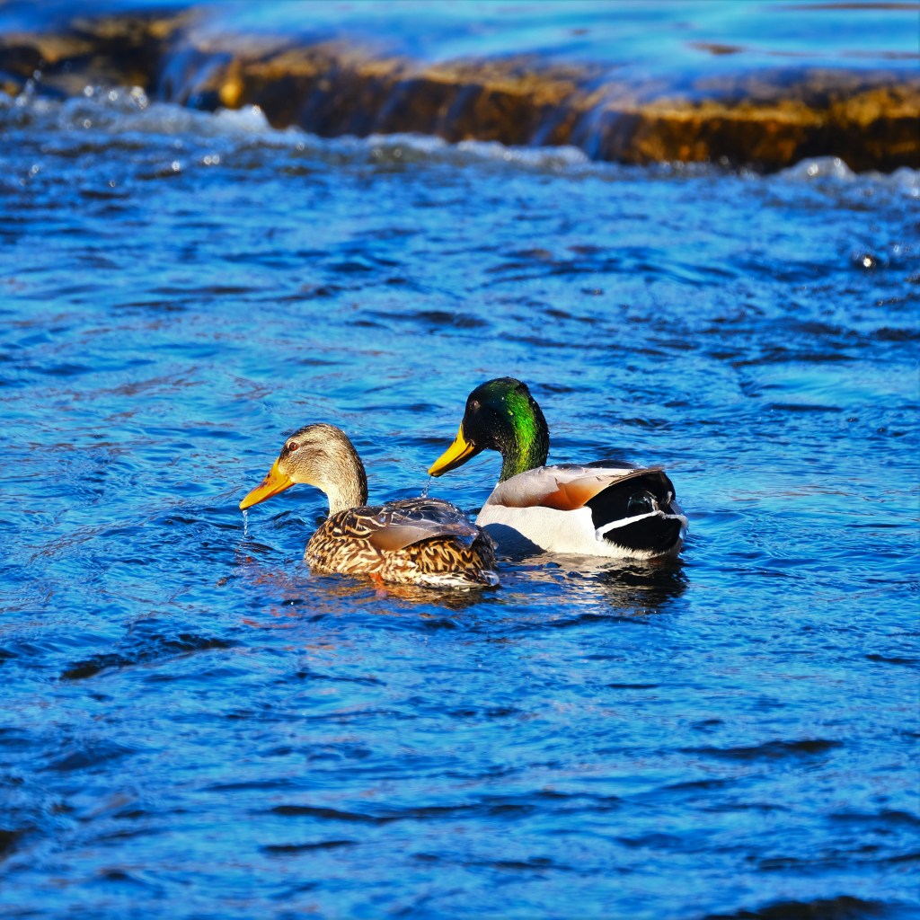 At the little bit of open water remaining around the falls, I found this pair of mallards who were perfecting their synchronized dabbling.