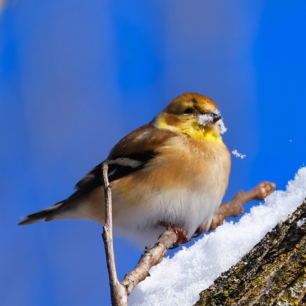 Lastly, here’s a goldfinch sampling the snow.