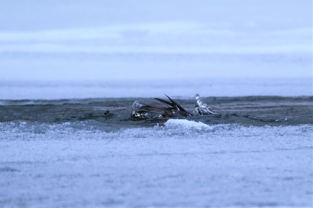 But just while she caught her breath. Then she went right back to foraging on the bottom.
