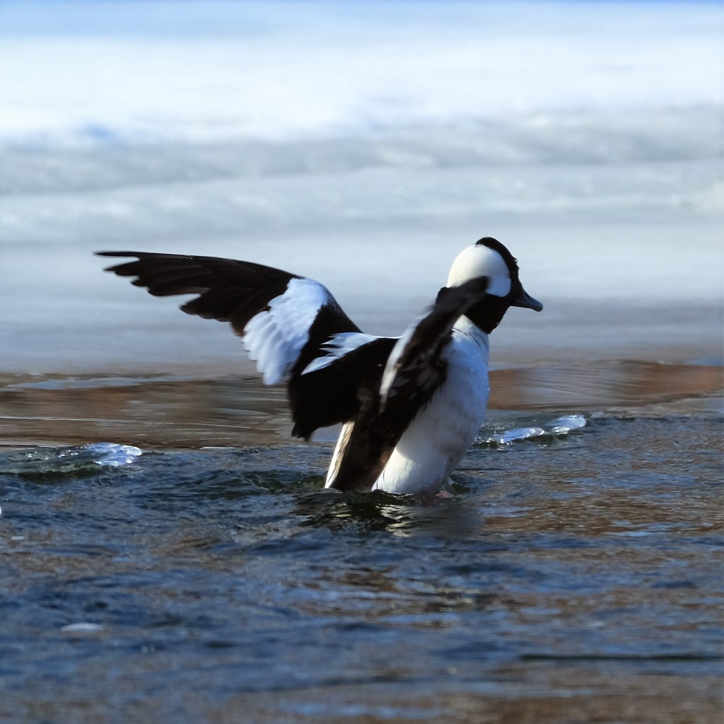 The nice pictures, however, are of the bufflehead drake drying his wings, …