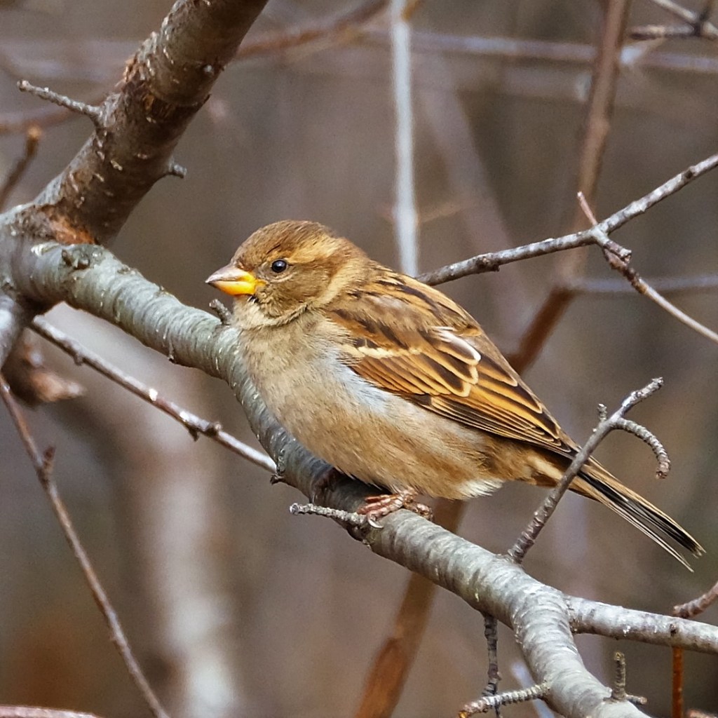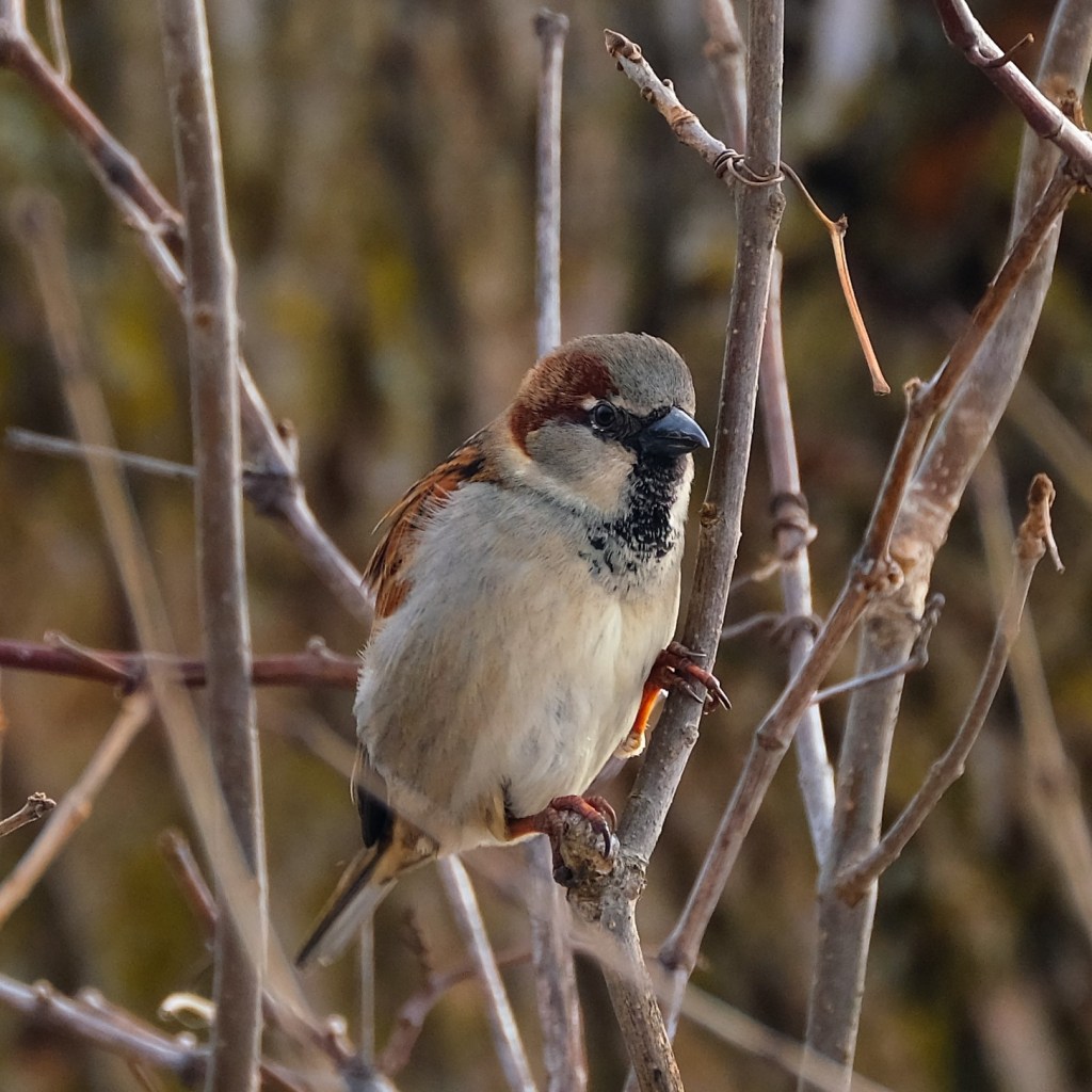 Finally, I spotted a bird I’ve seen plenty of times before, but not in the park until today, a house sparrow (Passer domesticus). Here’s a male with is signature “black bib”.