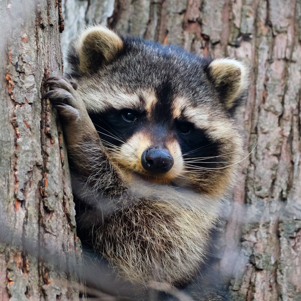 Here’s one more of our new favorite masked bandit. I tried to get a shot of it ambling away after it climbed down from the tree, but it was amazingly good at not giving me a clean line of sight. Go figure, right?