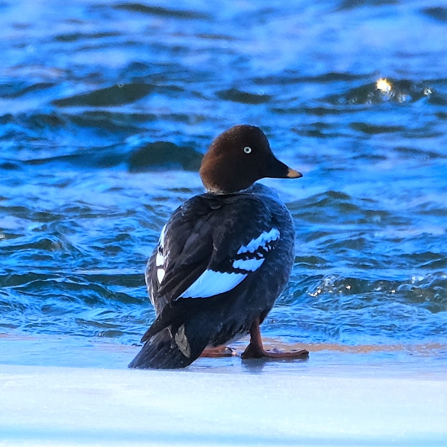 Here’s another look at the goldeneye hen up on the ice. It looks like she’s got some pretty good-sized flippers, eh?