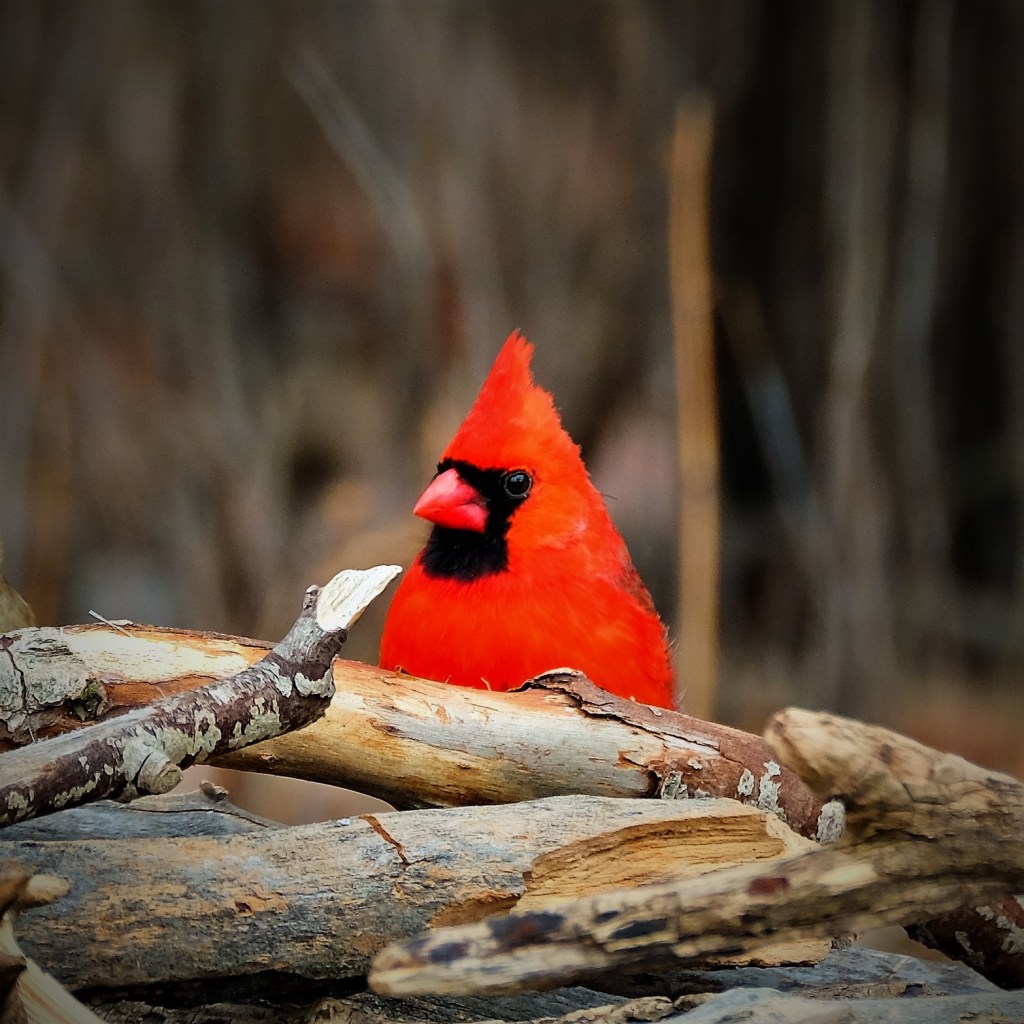 This cardinal by the pond gave me a wary look.