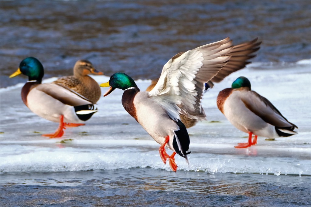Meanwhile, down on the river, a bunch of mallards were busy sorting out their pecking order and jockeying for position…