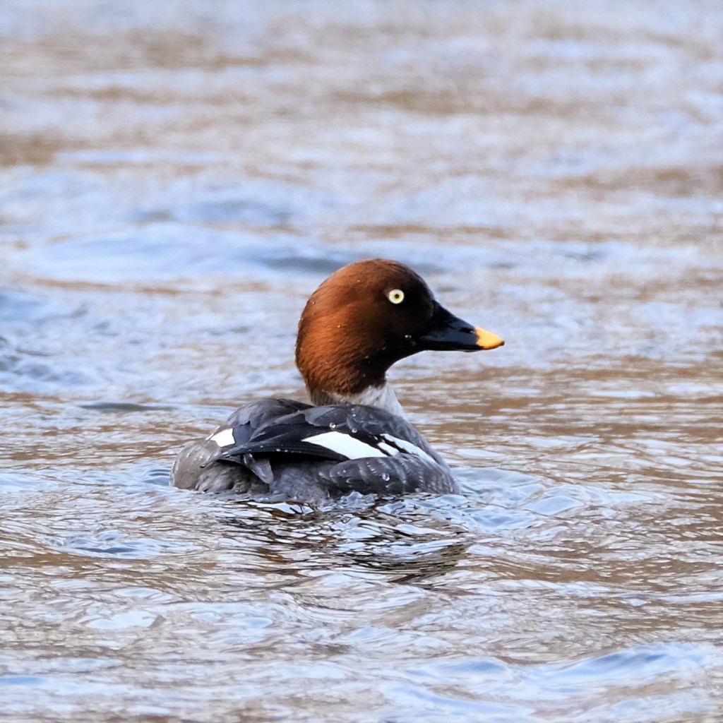 While this goldeneye hen stayed out of the fray.