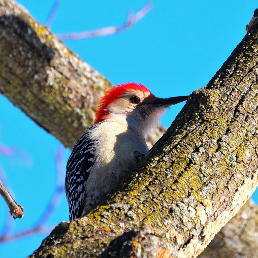 Back at the south end, and up on the bluff, a red-bellied woodpecker glanced our way for just a moment before taking off.