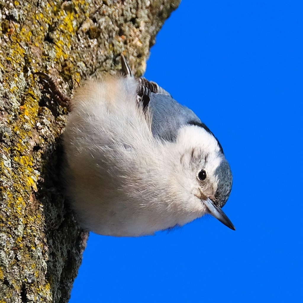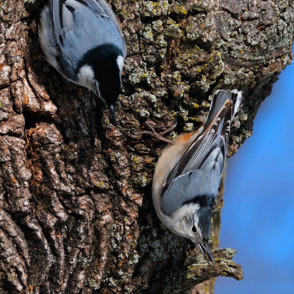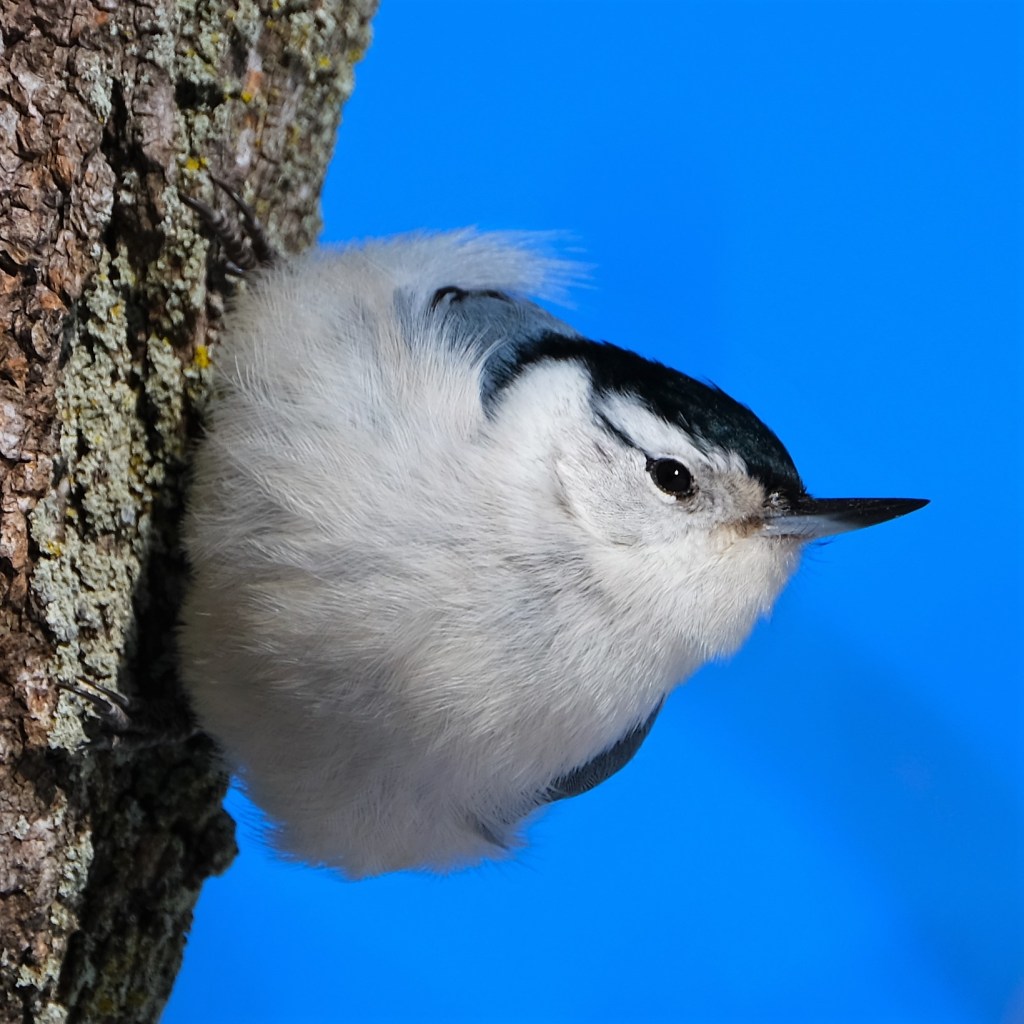 This pair of white-breasted nuthatches, however, may have been blinded by young love because they were far more accommodating. Here’s the male with his dashing black cap.