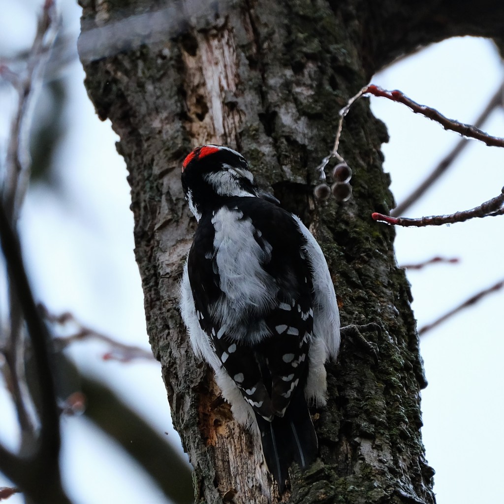 Plenty of woodpeckers were hard at work, and here’s a hairy male.
