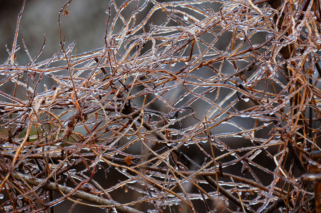 With the dark skies today, the ice certainly hasn’t had its chance to sparkle in the sun, but it made this tangle of vines catch my eye, nevertheless.