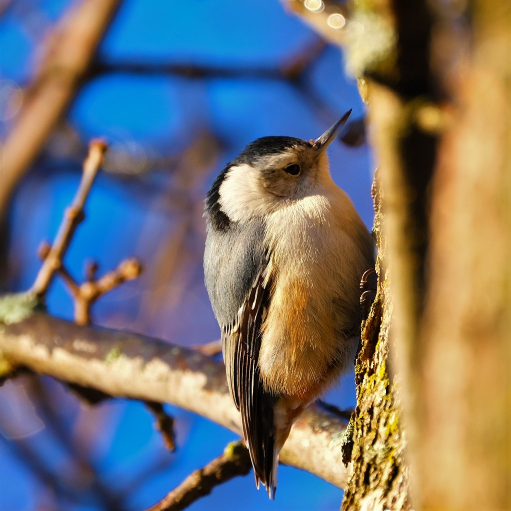 Here’s a nuthatch by the pond busily chattering as he foraged.