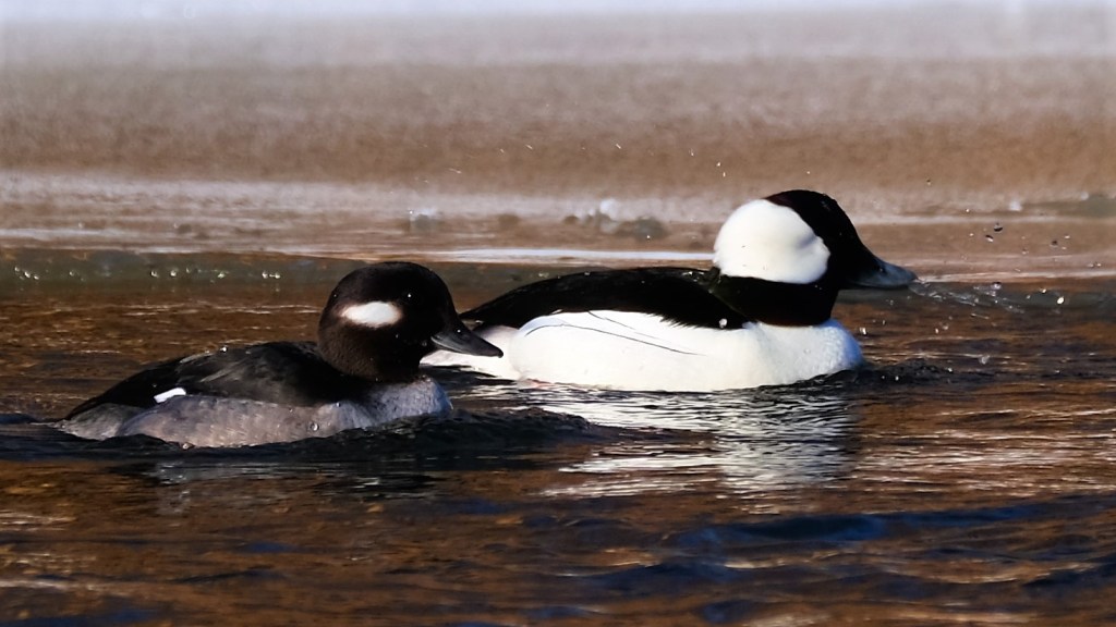Finally, the river was pretty quiet. I only counted one pair of mallards, a half dozen goldeneyes, and our regular pair of buffleheads.