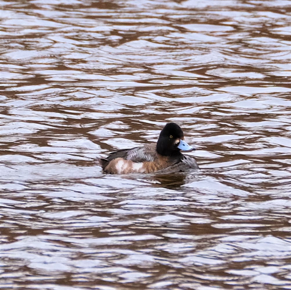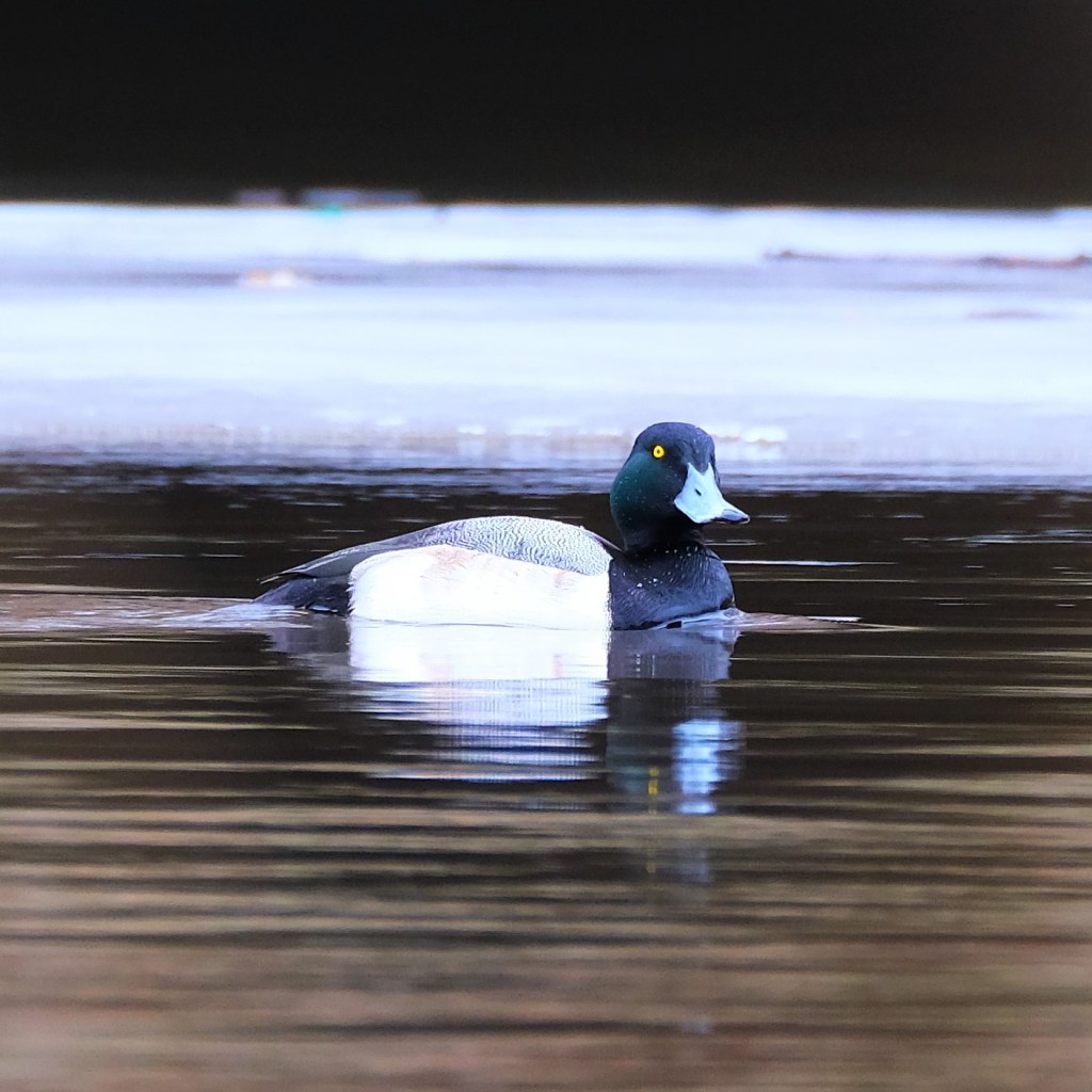 I am happy to report, however, that all that newly open water hasn’t gone to waste, and here’s another greater scaup who dropped in to take advantage of some above the falls.