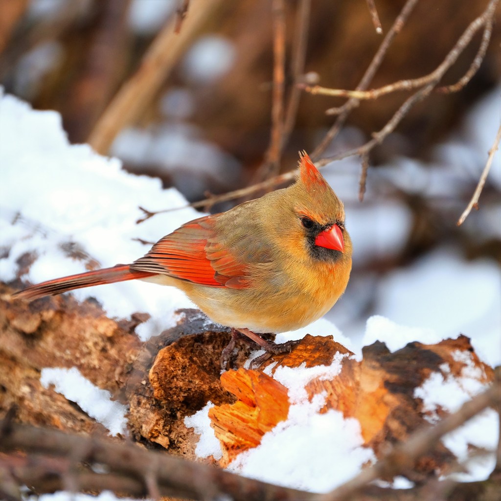This gorgeous female cardinal was also at the pond and looking for something good to eat.