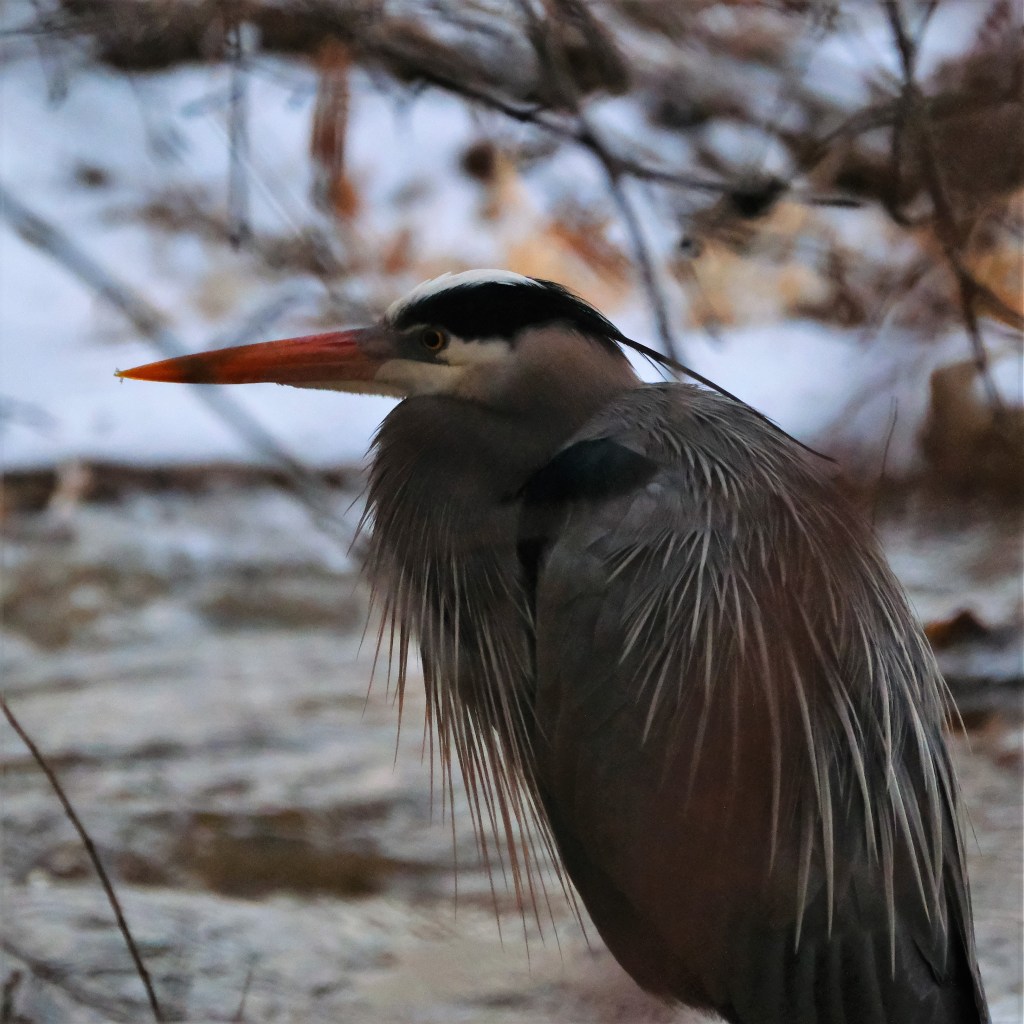 Right off the bat, at the far south end, I was surprised to find the blue heron again so soon. The look on its face suggests that it was not as thrilled to be there this morning as I was.