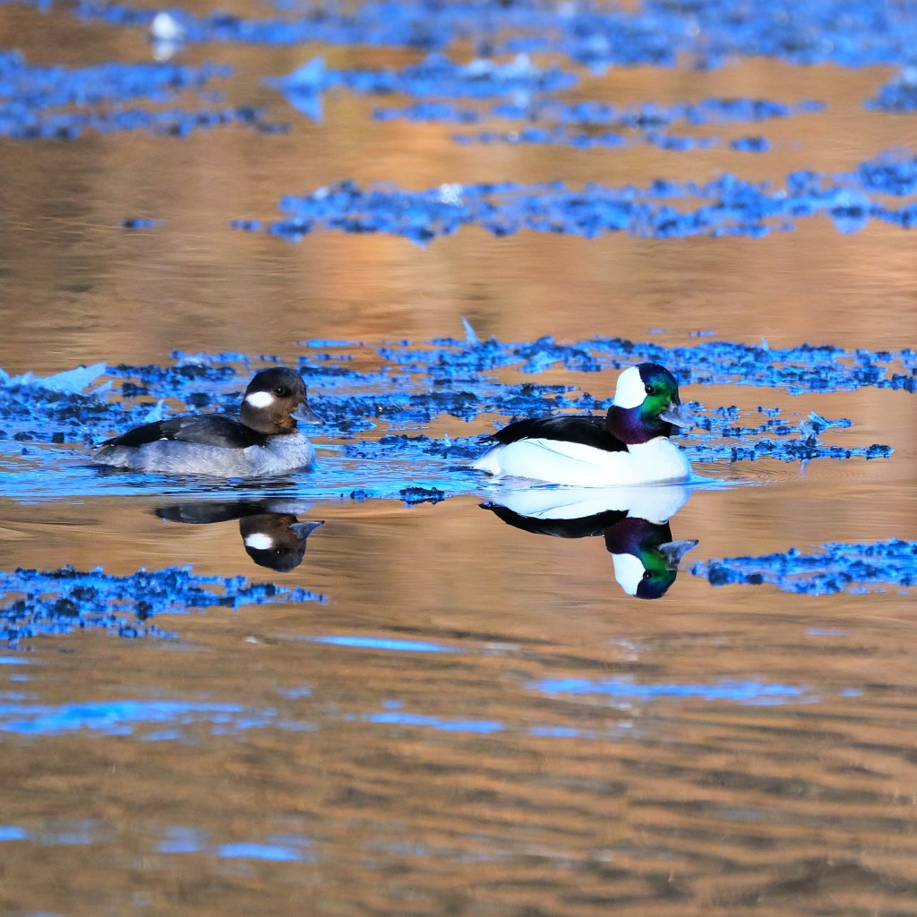 Above the falls, one pair of buffleheads had extricated itself from their little pack.