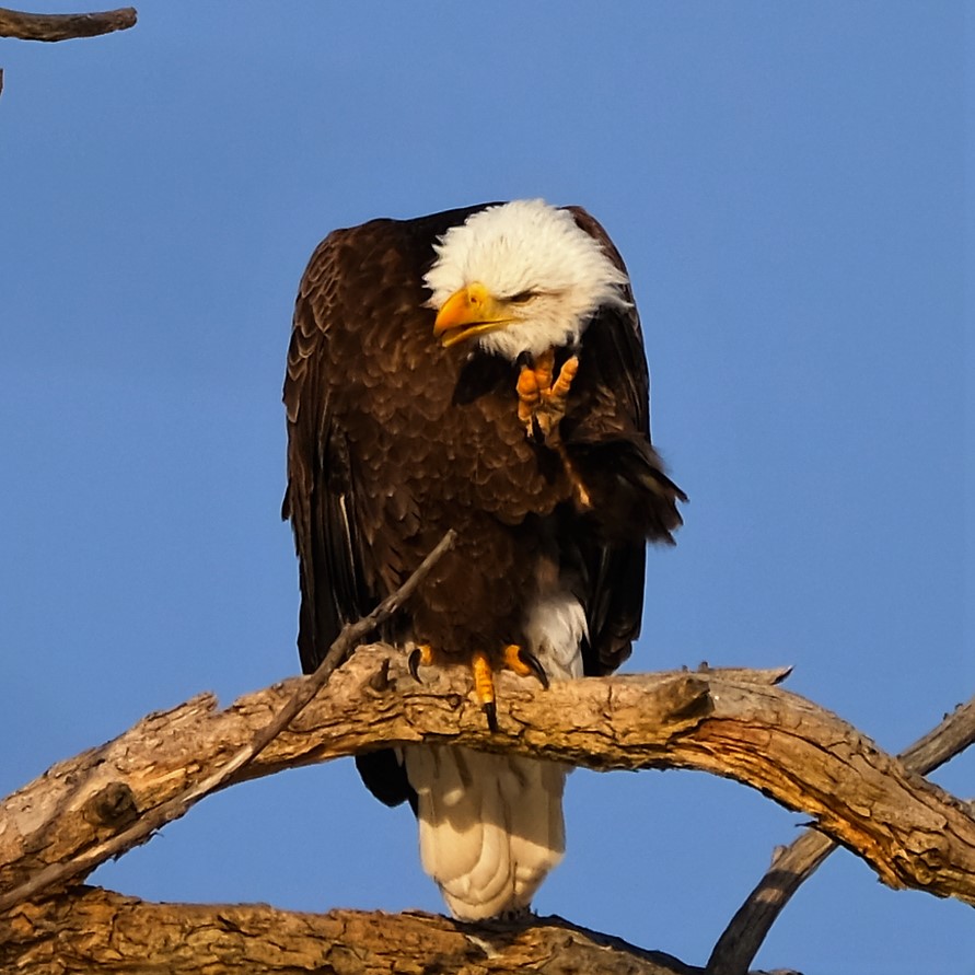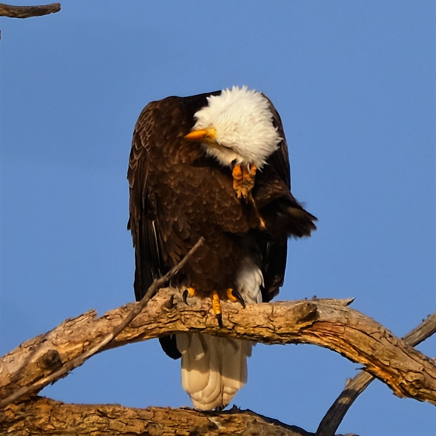 I didn’t see our eagle this morning, but here are some pictures from Monday that I haven’t shown you yet. It seems that it had an itch to scratch.