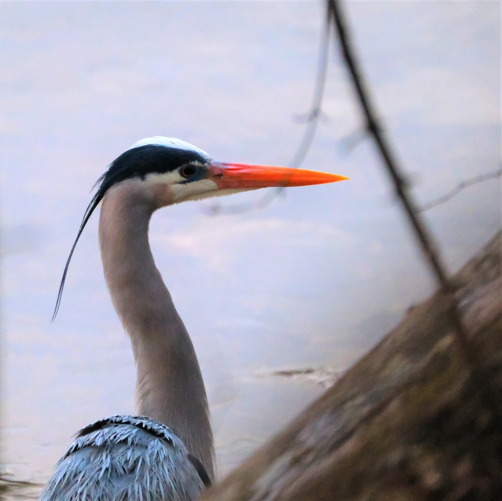 I was happy to see again the great blue heron who’s been hanging around, and here’s one picture I did take.