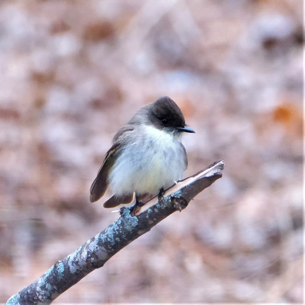 At first, I thought it was an eastern phoebe, but its feathers make quite the little peak at the back of its head, it’s beak has a tiny hook at the end, and it “looks like it’s wearing a gray or dusky vest.” All these features better match the wood-pewee than the phoebe. We’ll see soon enough if the experts let my identification stand.