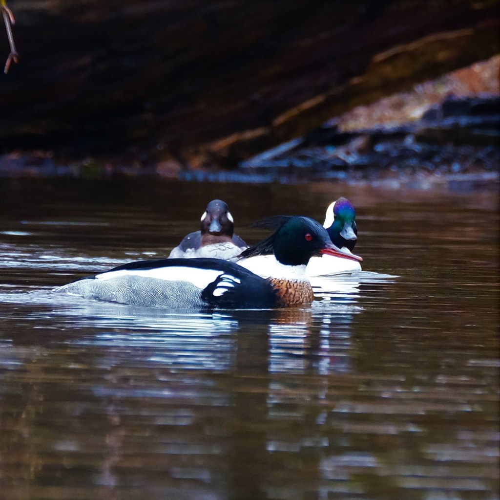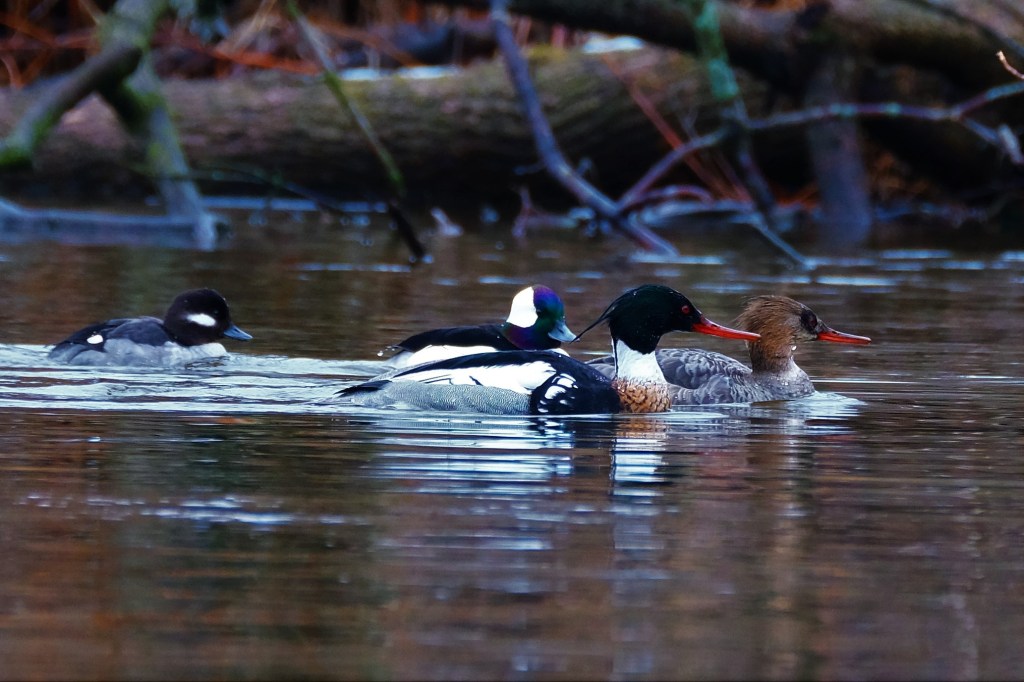 As I surveyed the open waters around the northern island, to see who might still be visiting, I was thrilled to find a pair of buffleheads cruising with a pair of red-breasted mergansers.