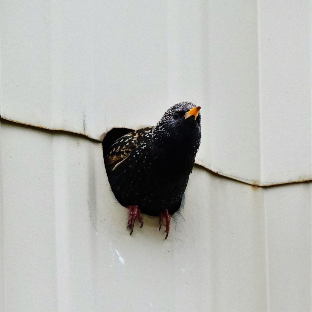 I don’t know what these holes in the siding were originally for, perhaps climate control pipes running to the roof, but they make perfect starling nesting cavities now.