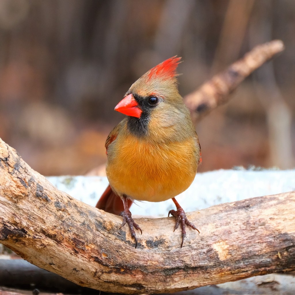 By the pond, a female cardinal, who has been starting to make herself scarce, was next.