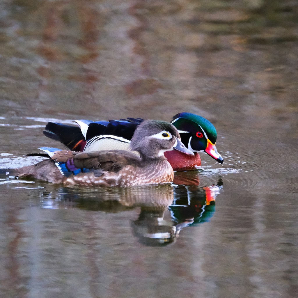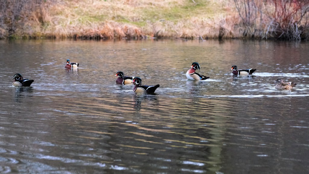 Meanwhile, up on the pond, there were a full dozen wood ducks, including two couples, …