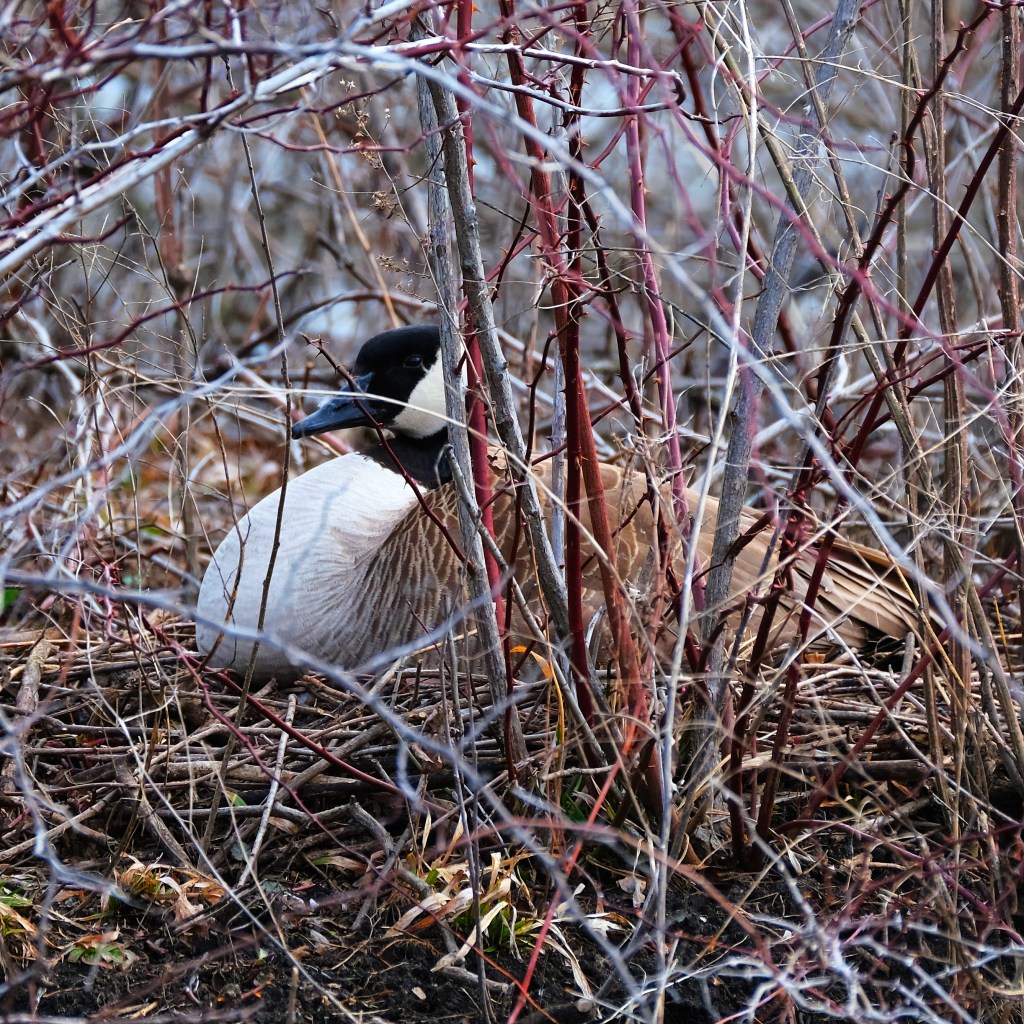 And the Canada goose is still incubating her clutch of eggs on the island.