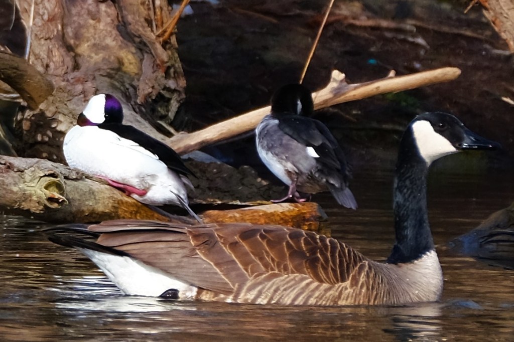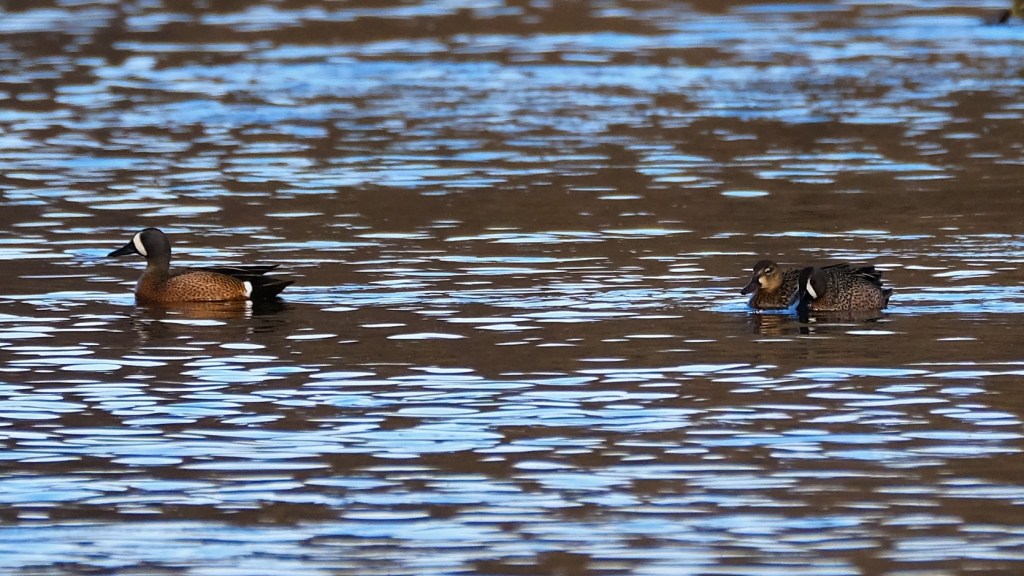 And, to round out the trifecta of new birds for the season, I finally spotted this trio of blue-winged teals on the river.