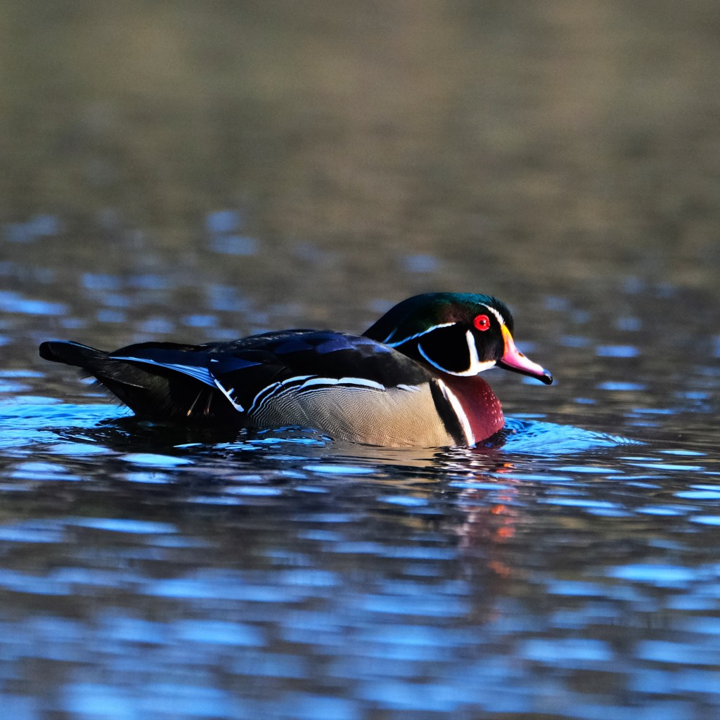 Up at the pond, I saw just two pairs of wood ducks this morning, and here’s one of the drakes.