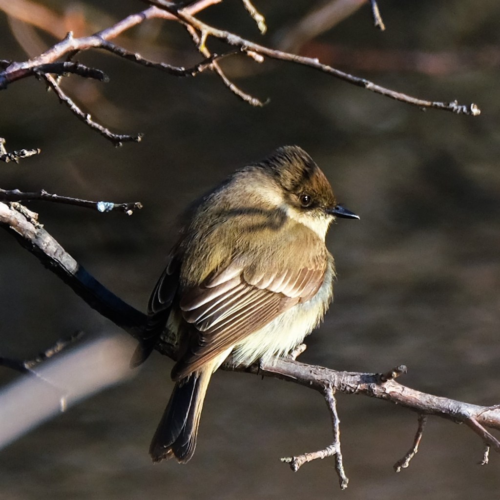 The pond seemed to be a little bit out of the wind, so there were a lot of little birds foraging for their breakfast. Here’s a swamp sparrow,